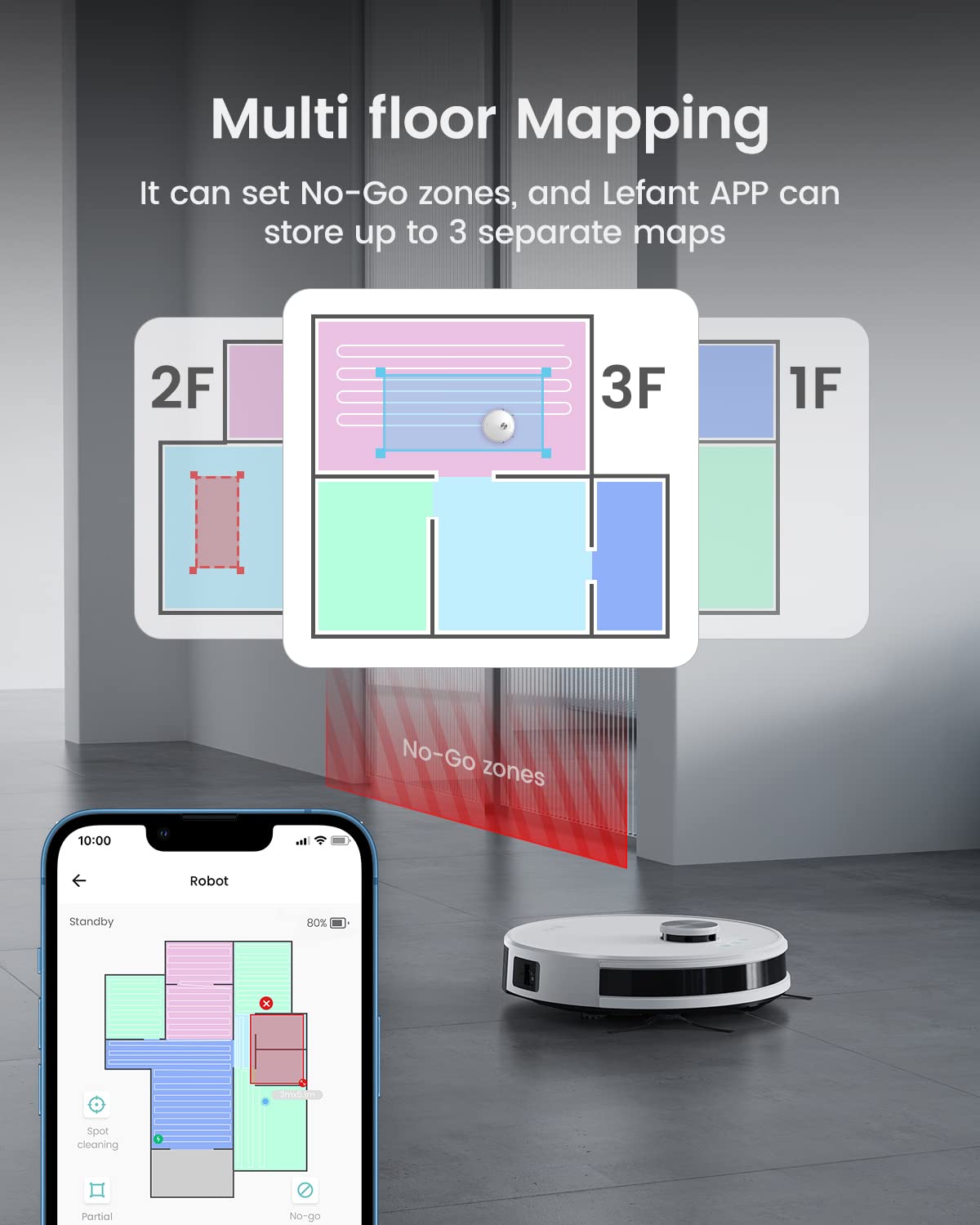 Smart App & Voice Control: Control via the Lefant App or voice commands with Alexa and Google Assistant. Set no-go zones, schedule cleaning, adjust suction modes, and manage multi-floor maps effortlessly.